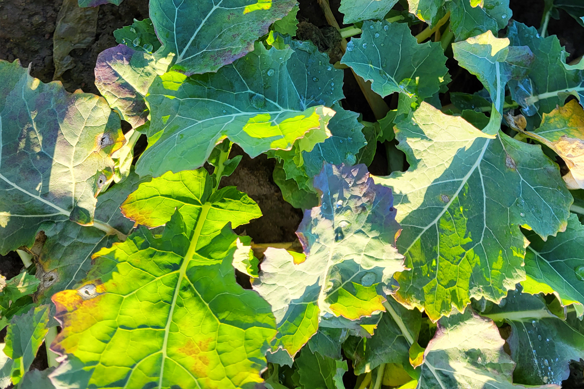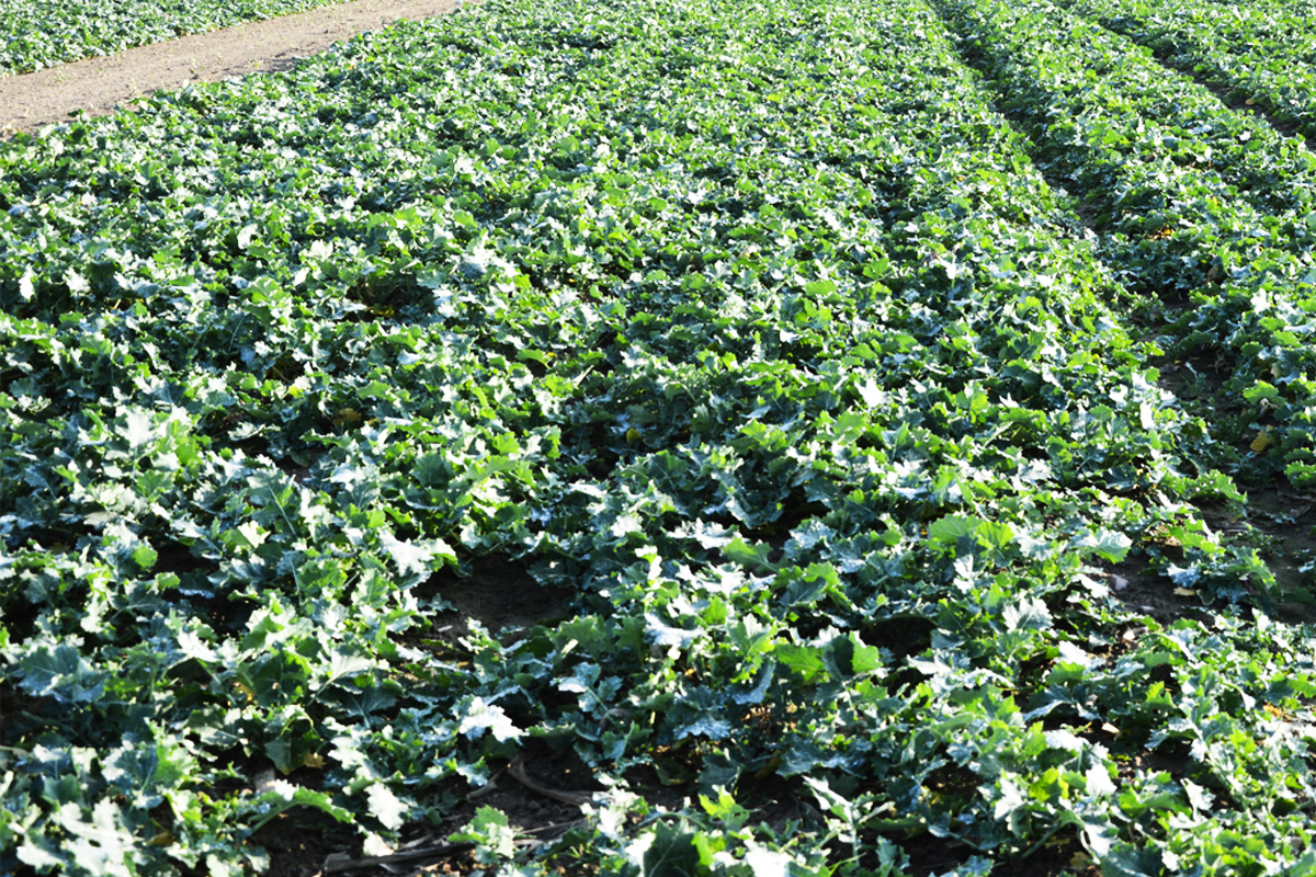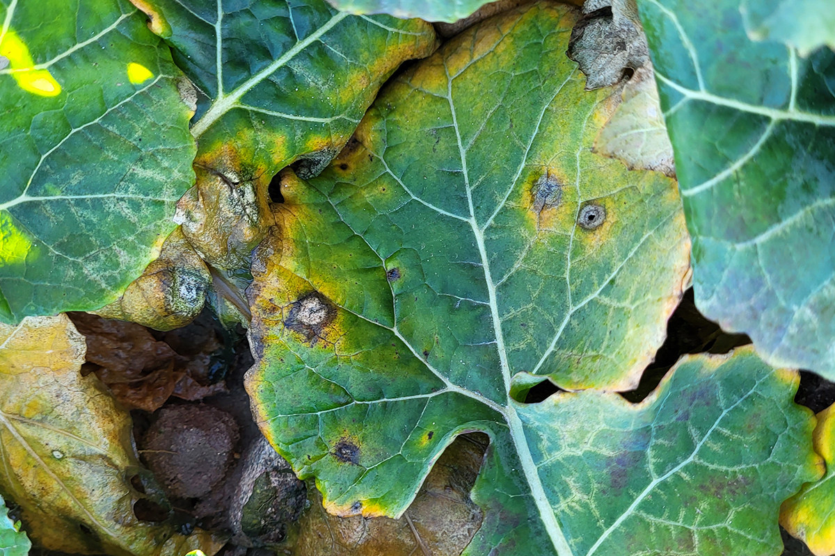 Obserwując stan roślin na poletkach, można jednak zauważyć coś jeszcze, co mocno przykuwa uwagę – porażenie przez suchą zgniliznę kapustnych (fot. 3.). Stopień porażenia jest widoczny w zależności od odmian, ponieważ jesienią wszystkie poletka były chronione zabiegiem fungicydowym. Warto wspomnieć, że w Polsce występują plantacje, na których z uwagi na słabszy stan roślin jesienią nie zastosowano fungicydów lub zaaplikowano środki o słabszym działaniu, co oznacza występowanie tam jeszcze większej presji choroby.