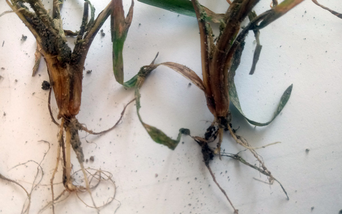 Występuje przed i krótko po wschodach zbóż. Efektem jest zamieranie siewek jeszcze przed wydostaniem nad powierzchnię lub krótko po nim. Jedyna metoda ochrony to zaprawianie nasion.