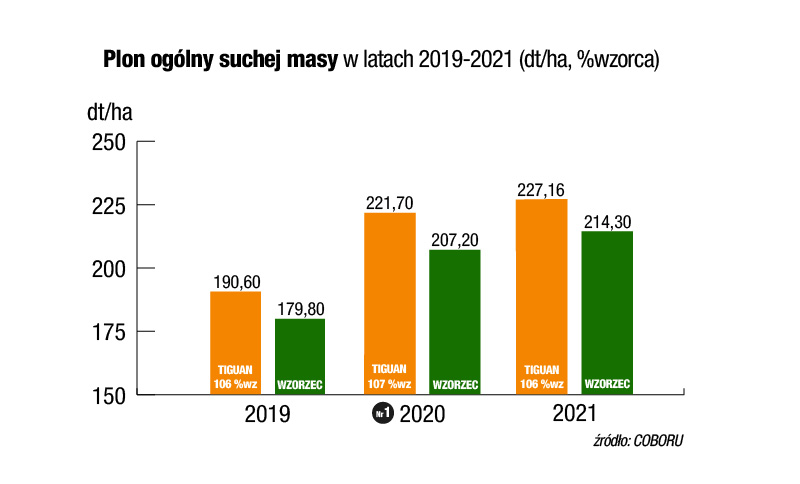 Hodowle nieustannie pracują nad odmianami, które będą wydajniejsze oraz bardziej przystosowane do panujących warunków glebowo-klimatycznych. Efektem tych prac jest m.in. odmiana Tiguan, która uzyskała rejestrację w 2021 roku w COBORU, w grupie średnio-wczesnych odmian kiszonkowych (FAO 250).