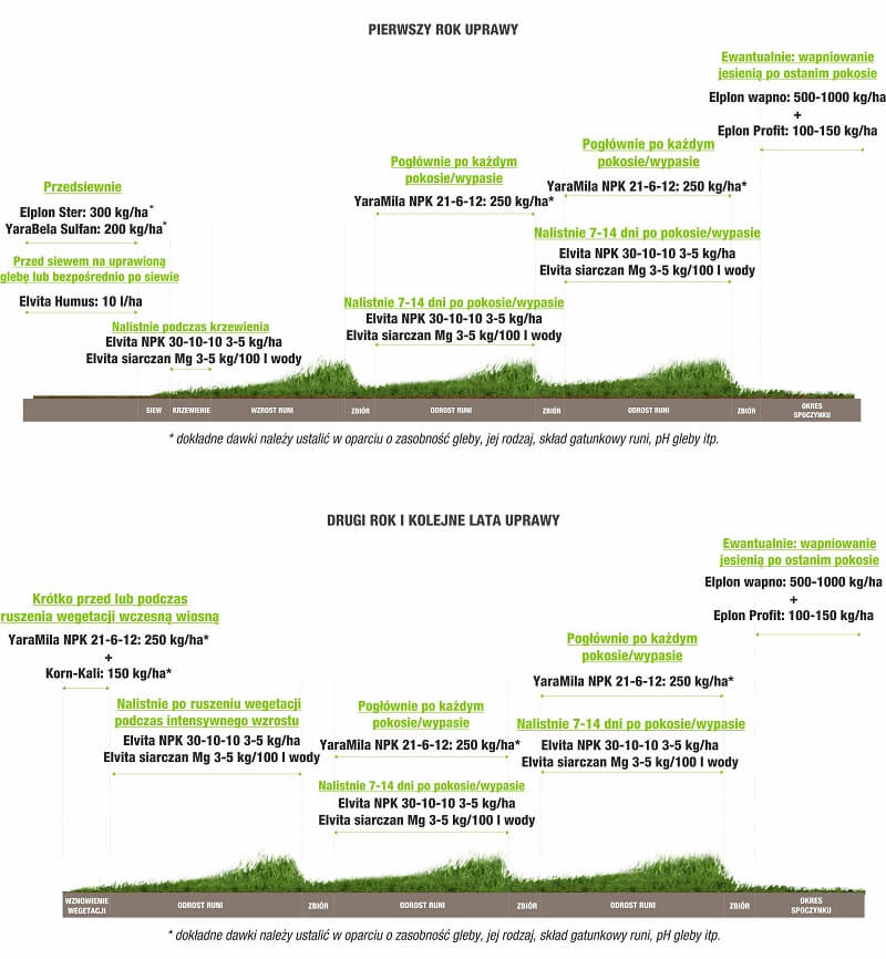 W pierwszym roku uprawy traw zawsze występują problemy ze wschodami oraz z zadowalającą produkcyjnością. Ważne jest, żeby trawy jak najszybciej się rozkrzewiły i zagęściły ruń. Daje to możliwość zebrania większej ilości zielonki już w pierwszym roku uprawy oraz sprawia, że w runi jest mniej chwastów. Takie efekty przynosi zastosowanie przed siewem na uprawioną glebę Elvity Humus. Wpływa ona zdecydowanie na zagęszczenie runi poprzez poprawę sprawności stanowiska. Ponadto polepsza ukorzenianie roślin oraz zwiększa dostępność składników pokarmowych, co w efekcie zwiększa produktywność takiego użytku już w roku założenia.