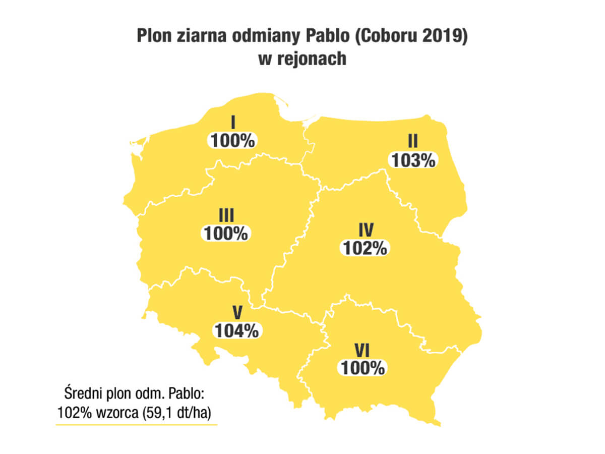 Co więcej, COBORU prowadziło doświadczenia w rejonach nie dotkniętych deficytem wody oraz w tych z występującą suszą. Średnia plonu owsa Pablo z doświadczeń zarówno w jednych, jak i drugich warunkach przekraczała poziom wzorca (wzorcem były: Agent, Bingo oraz Kozak).