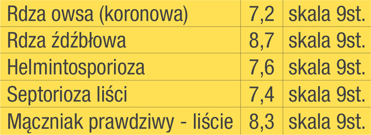 Tabela: Odporność odmiany Pablo na choroby (źródło: COBORU)
