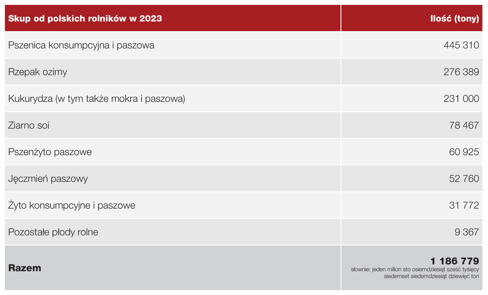 3. Na przestrzeni ubiegłego 2023 roku skupiliśmy łącznie 1 mln 187 tys. t płodów rolnych od krajowych gospodarstw.