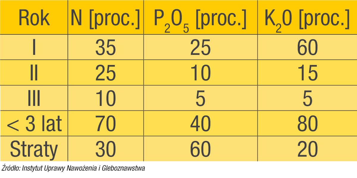 Dane te obrazują, jak ważne jest uzupełnienie składników pokarmowych w formie mineralnej. Obornik to doskonały nawóz, ale należy pamiętać, że jego działanie okazuje się zawodne w niesprzyjających warunkach atmosferycznych.