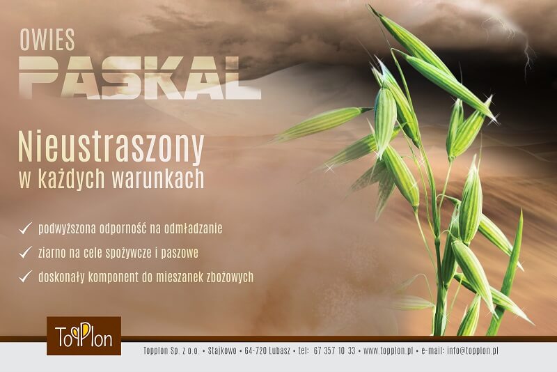 Paskal to odmiana wysoko plonująca (104% wzorca wg COBORU), o grubym ziarnie. Doskonale sprawdza się na glebach słabych, a ponadto jest jedną z odmian owsa najlepiej znoszących zakwaszone stanowiska. Obserwując Paskala na polach uprawnych zauważyć można, iż wyróżnia się podwyższoną tolerancją na okresowe niedobory wody.