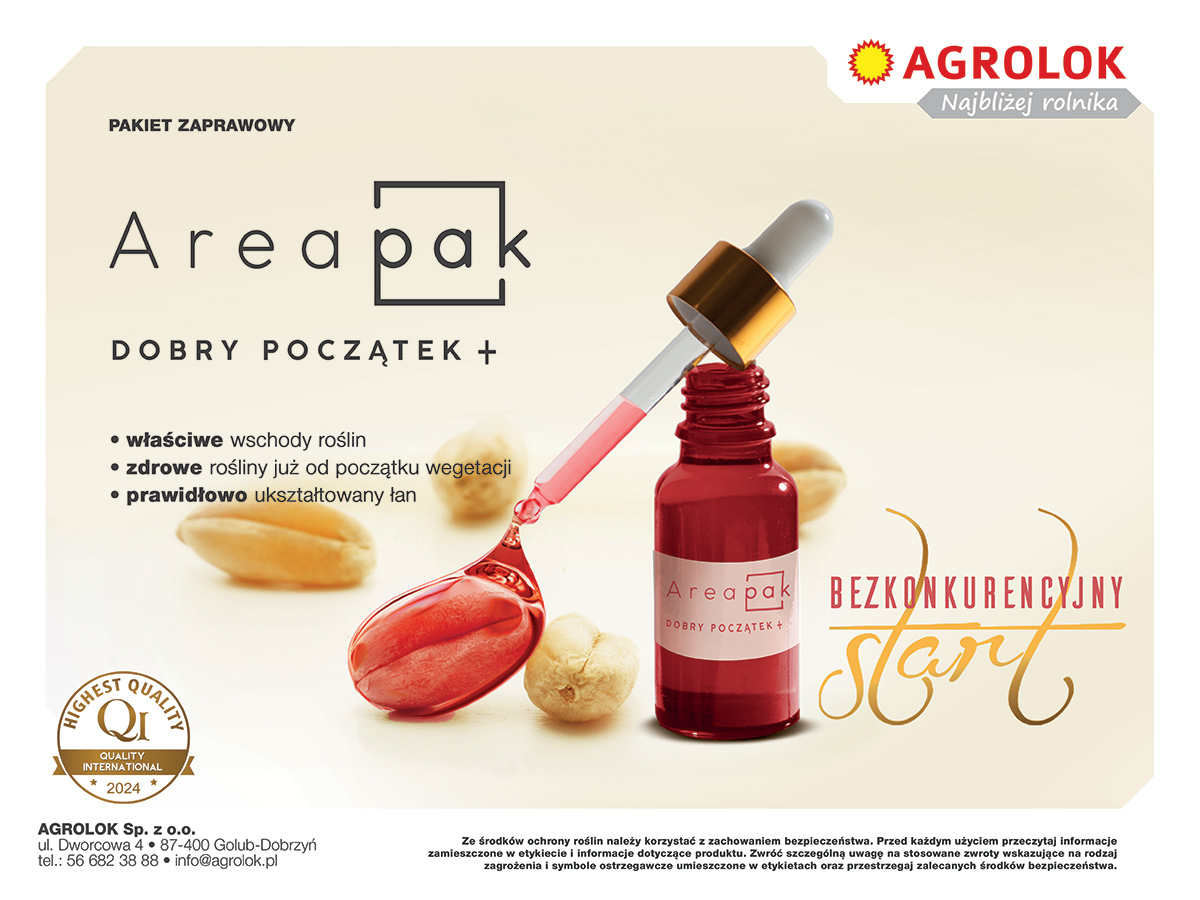 Areapak Dobry Początek Plus to gotowy zestaw do zaprawiania ziarna zbóż w celu ochrony przed chorobami grzybowymi atakującymi siewki w okresie jesiennym i zimowym. Zapewnia najwyższą ochronę przeciwko grzybom z rodzaju Fusarium, powodujących między innymi zamieranie młodych siewek zbóż. Areapak Dobry Początek Plus składa się z grzybobójczej zaprawy nasiennej oraz produktu specjalistycznego poprawiającego właściwości techniczne materiału siewnego oraz wschody i wigor roślin.
