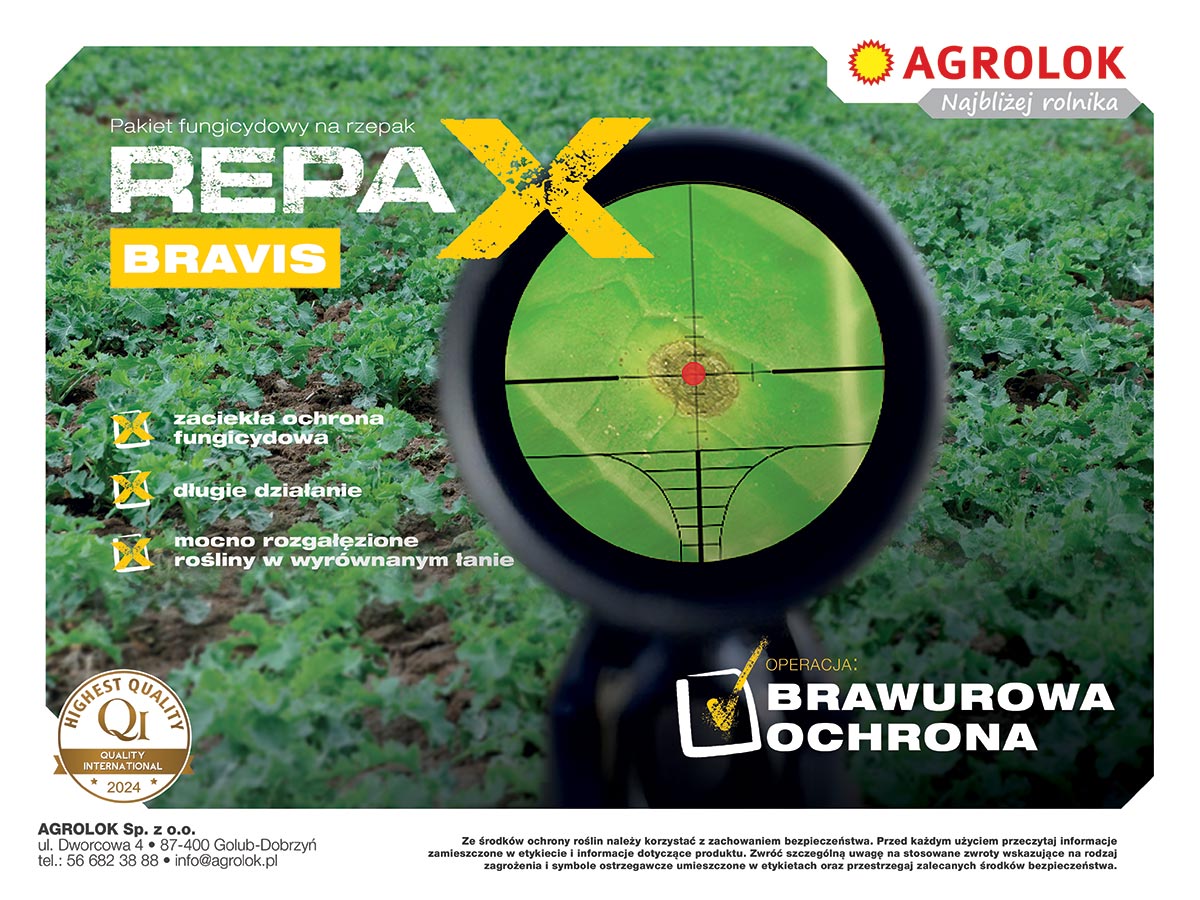 Repax Bravis to pakiet fungicydowo-regulacyjny do pierwszego, wiosennego zabiegu grzybobójczego w rzepaku. Precyzyjnie uderza w choroby grzybowe, co przekłada się na wysoką skuteczność całego pakietu. Z uwagi na bardzo szybkie działanie i transport w roślinach, błyskawicznie zatrzymuje rozwój chorób i prowadzi do całkowitego ich wyniszczenia. Dodatkowym działaniem pakietu jest regulacja pokroju, przekładająca się na wyrównanie plantacji we wzroście oraz mobilizację roślin rzepaku do intensywniejszego dobudowywania pędów bocznych oraz ich lepszego doświetlenia. Dodatkowo plantacja, na której zastosowano Repax Bravis, równomierniej kwitnie i dojrzewa, co ułatwia jej prowadzenie.