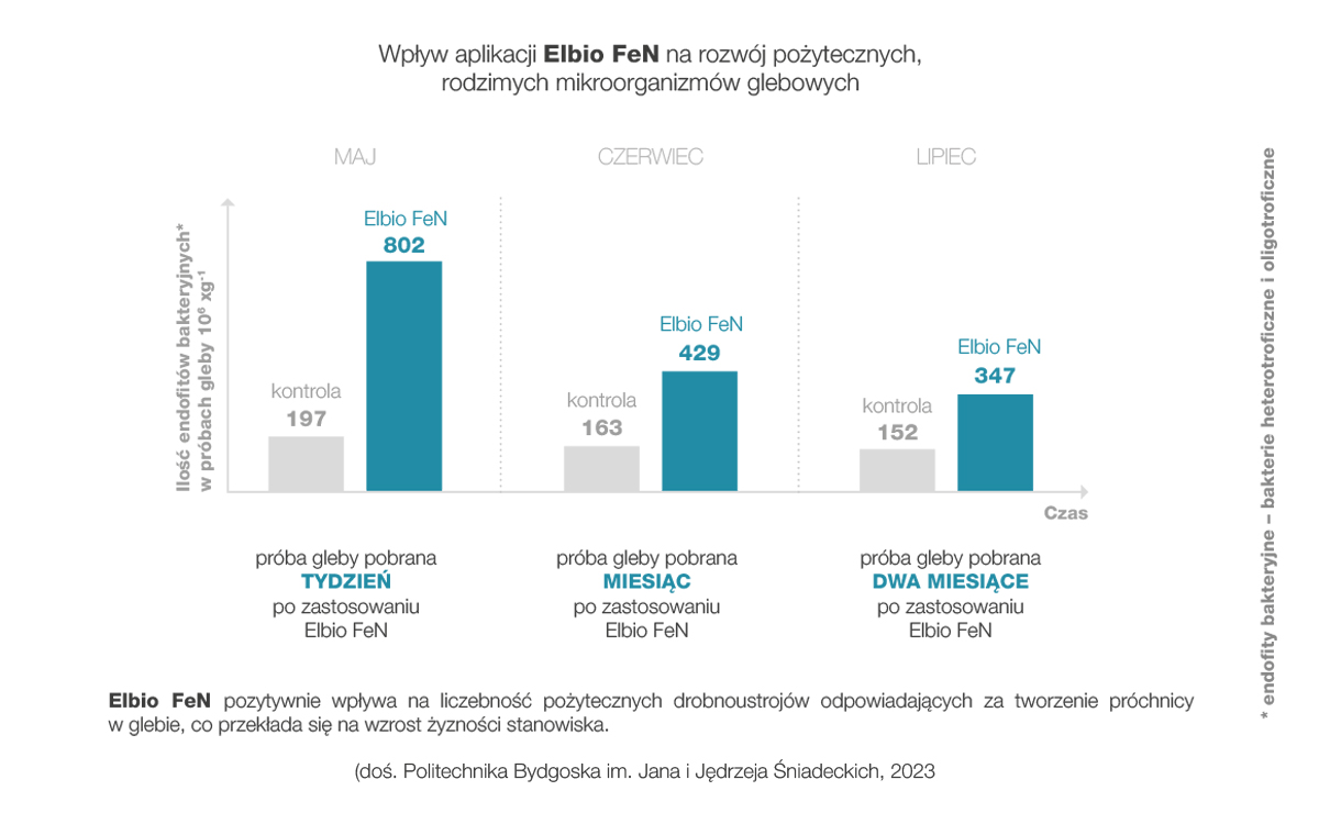 Elbio FeN jest niezwykle wydajny w warunkach polskiego rolnictwa. Adaptuje się do różnych warunków siedliskowych, tolerując gleby od pH 5 i utrzymuje aktywność biologiczną już powyżej 4° C.