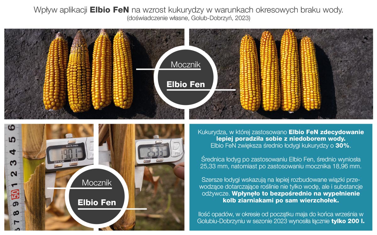 Dzięki temu Elbio FeN poprawia parametry ilościowe i jakościowe plonu, dzięki dostarczeniu większej ilości azotu przez cały okres wegetacji.